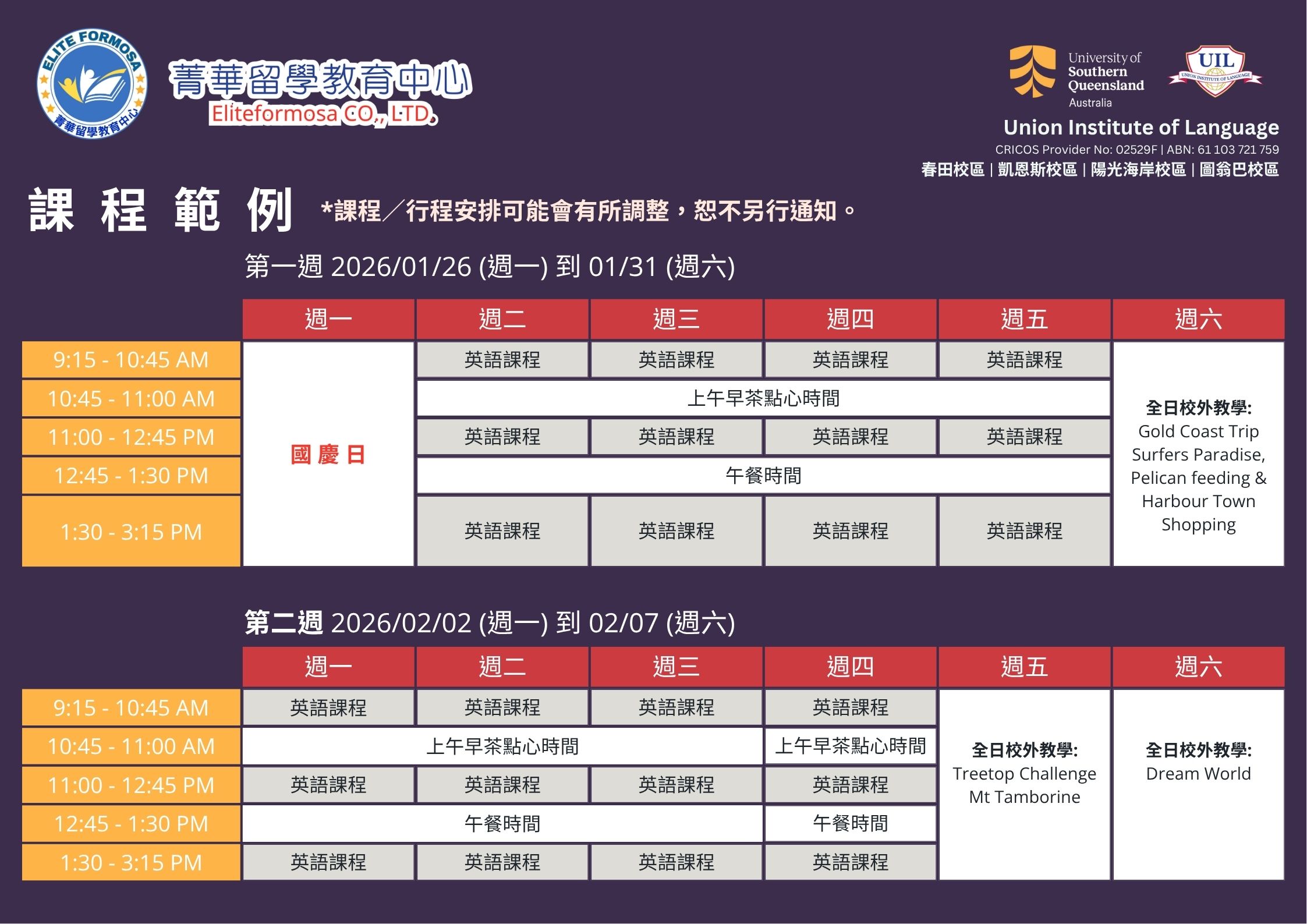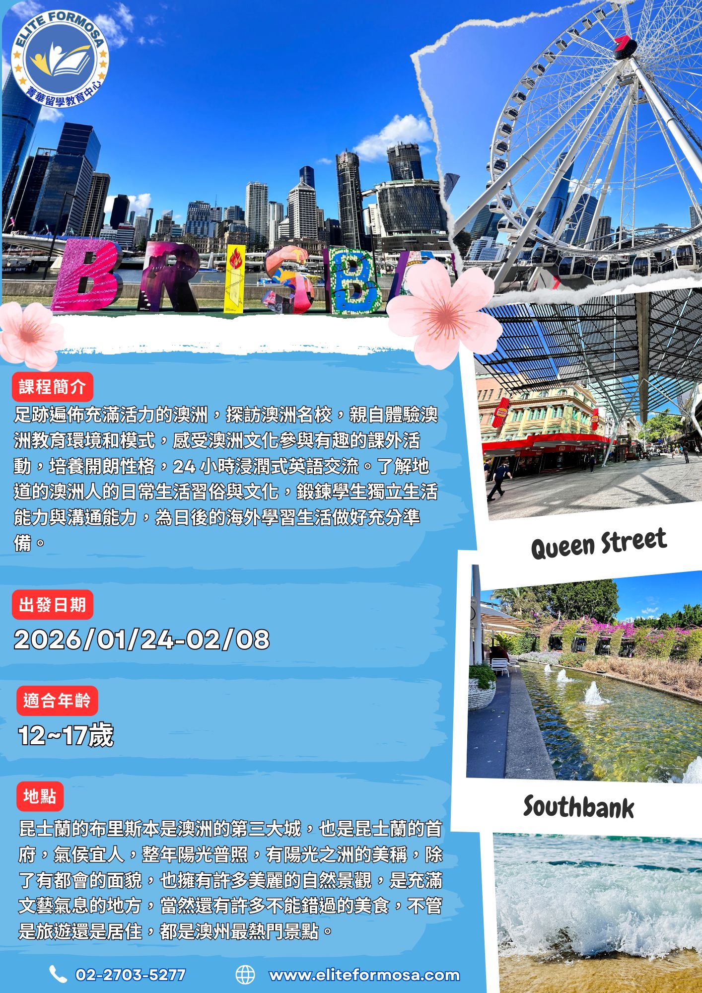 你是不是也在考慮今年暑假要前往澳洲布里斯本,感受那陽光灑在身上的溫暖呢?別再猶豫,讓菁華帶領你踏上南半球之旅,體驗一場語言學習與文化探索的精彩寒假遊學吧!無需擔心初次出國,我們的隨團老師會一路陪伴,提供專業指導和支持,確保旅程安全無憂。