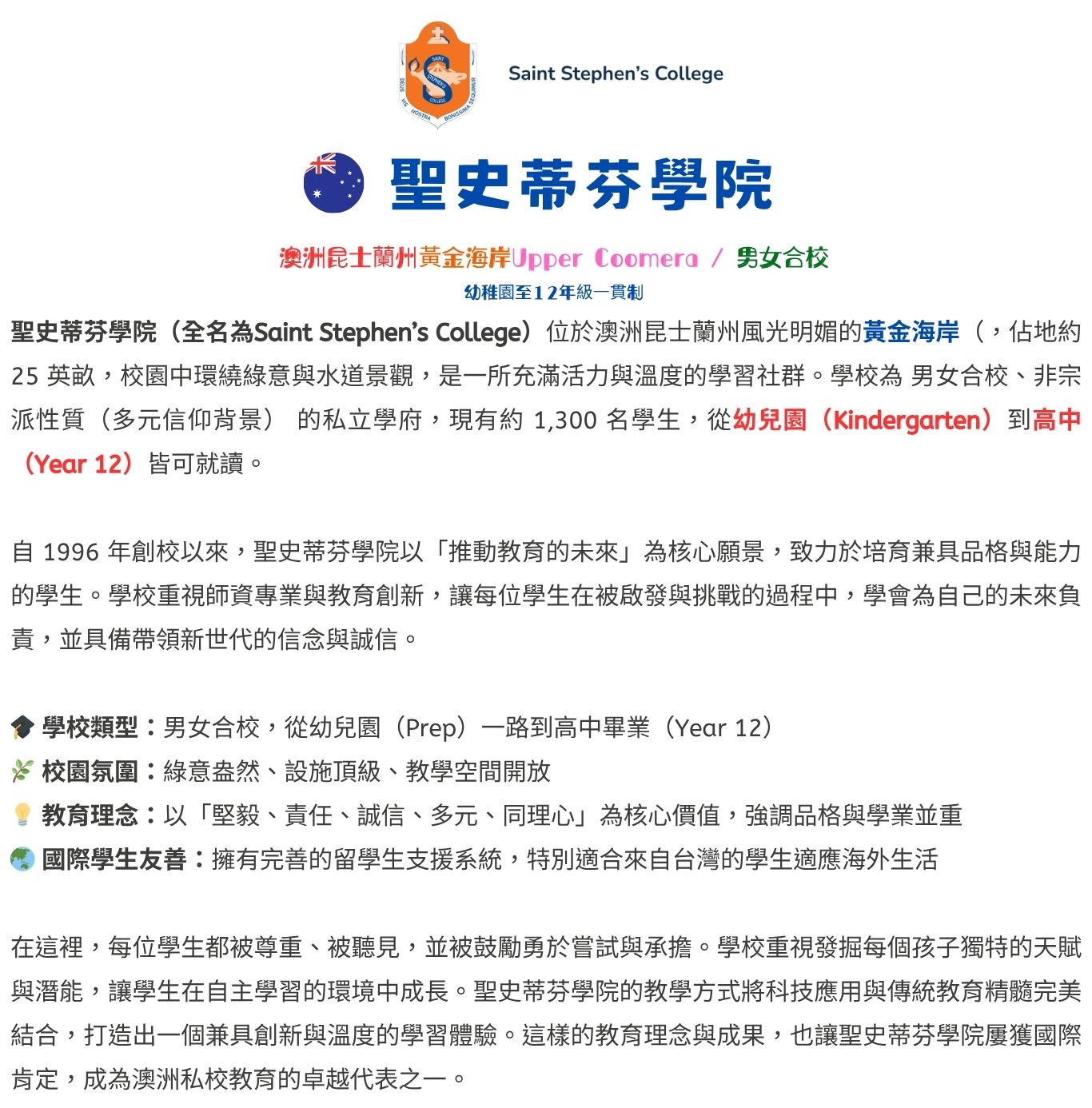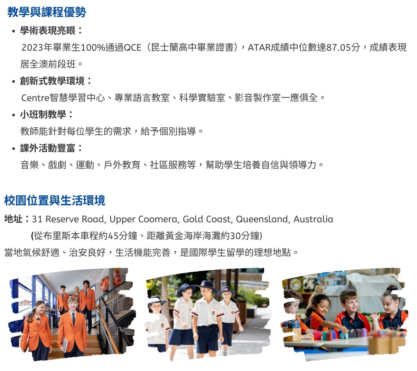 學校類型:男女合校,從幼兒園(Prep)到高中畢業(Year 12)