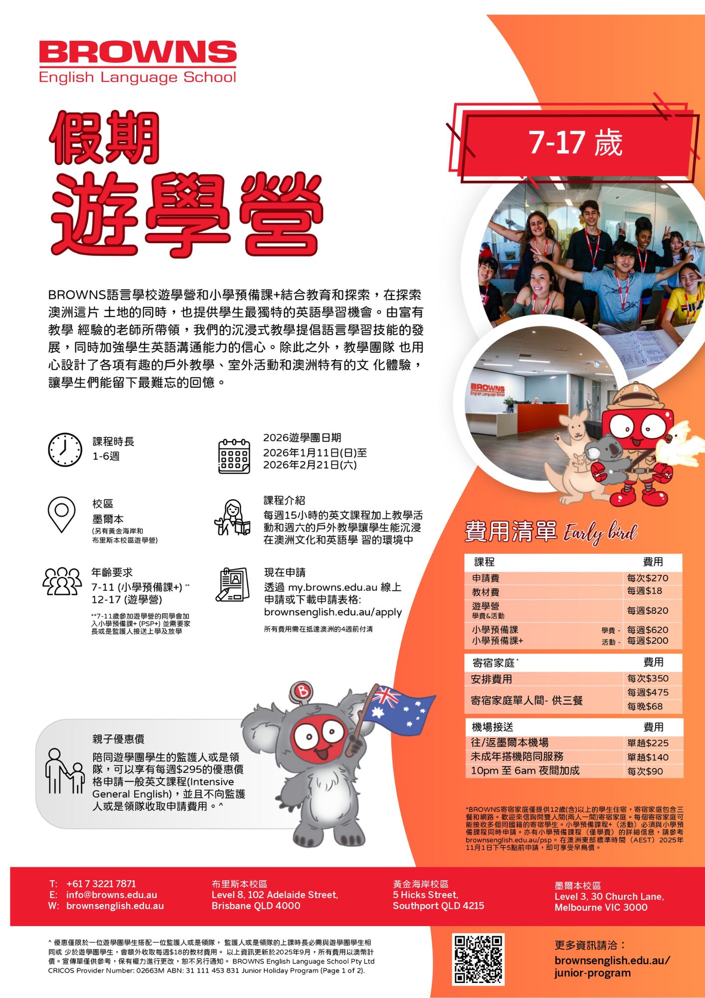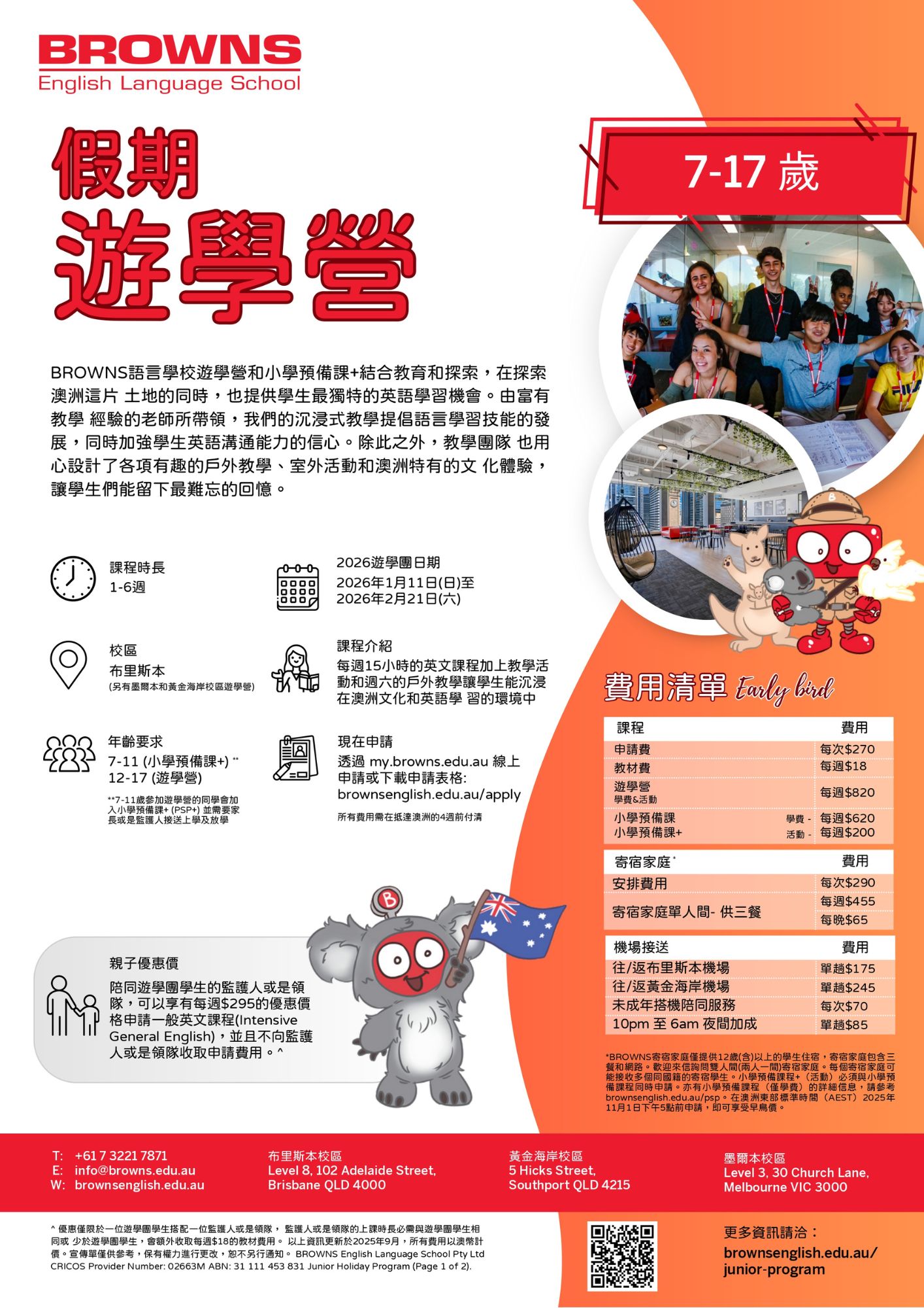 • 機場接送服務:BROWNS 的司機會親自在機場迎接青少年團體,並將他們單獨送到寄宿家庭。
