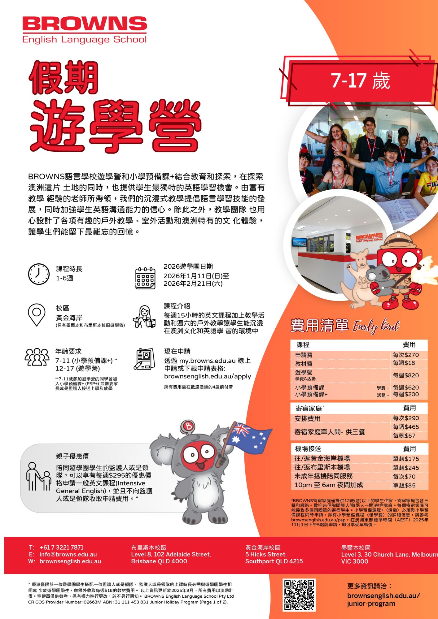 • 學生活動資訊:專門的活動官員提供有關“布里斯班最新動態”的信息以及澳大利亞境內旅行的特別促銷信息。