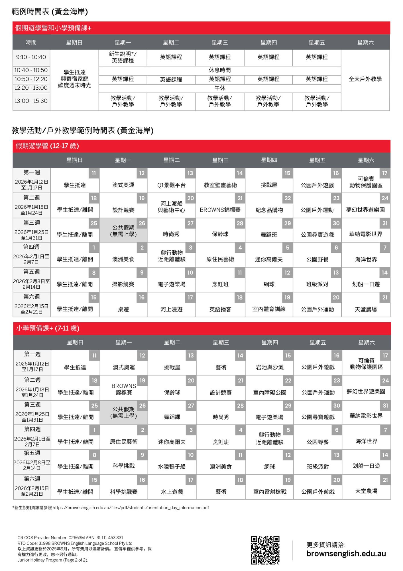 - *視季節/校園而定。黃金海岸Seniors Class適合 11 至 17 歲的學生。