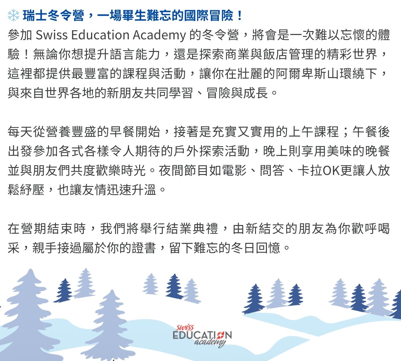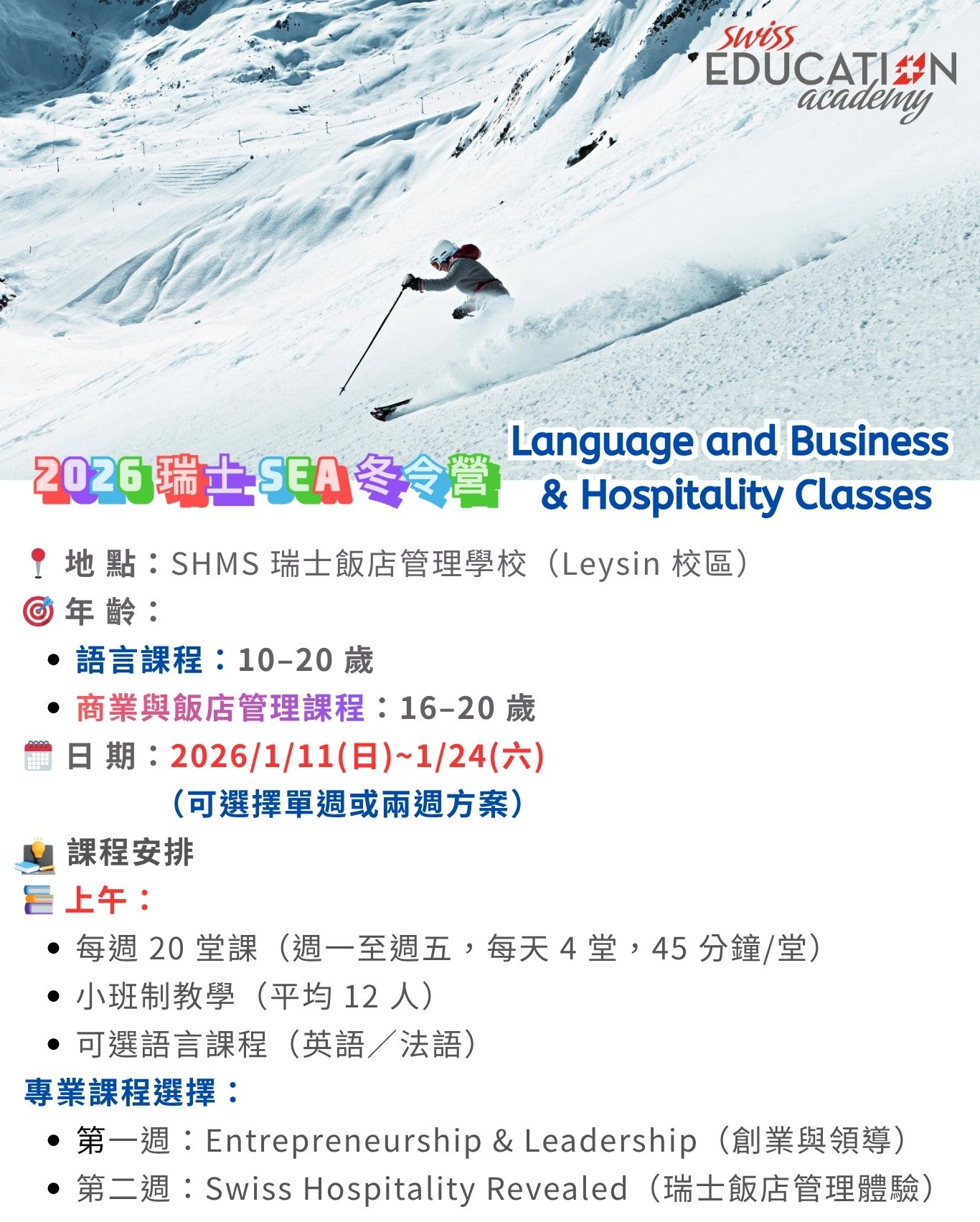 上課校區:SHMS 瑞士飯店管理學校(Leysin 校區)